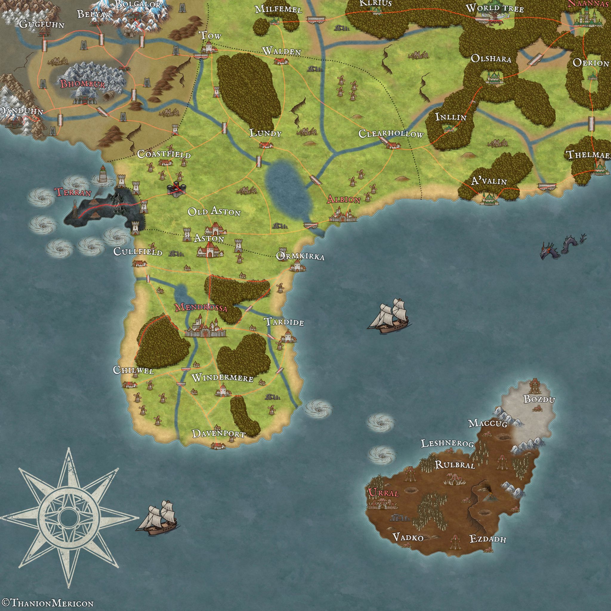 The first of 2 human regions is the region of Mendrossa. This region is home to the Mendrossian Empire, Which is ruled by Emperor Herald. 100 years ago the Mendrossian Empire was formed after Imperial troops overthrew their corrupt monarchy and 2 states were formed, the Empire and the Republic of Albion which laid to the North of Mendrossa. The region of Mendrossa is well know for it's industry and use of the steam engine. It's fertile land is home to numerous farms, orchards and meadows. The mountains of Mendrossa are filled with precious gems and top quality ores that the people use for it's booming industry. Mendrossa excels at makin machinery may it be for warfare or economical uses. The people are a proud people which enjoy a prosperous lifestyle.